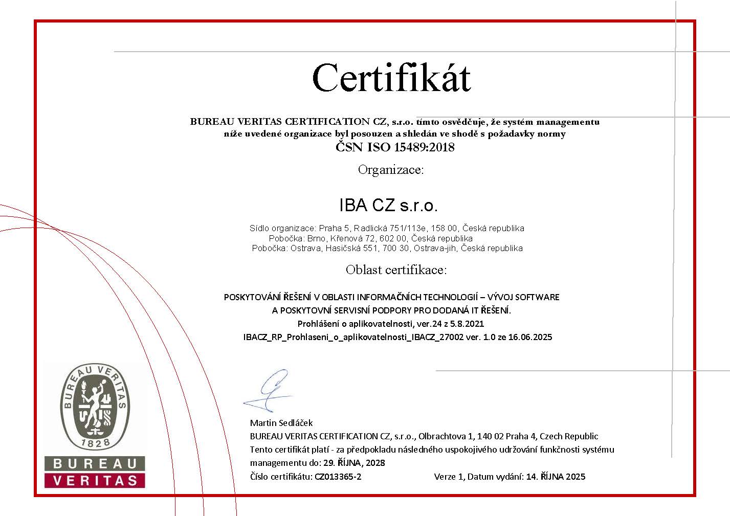 PRAGUE, CZECH REPUBLIC, October 21, 2025 /EINPresswire.com/ -- IBA CZ, a member of IBA Group, achieved certification that confirms compliance with ISO 15489-1:2016 Information and Documentation – Records Management. Part 1: Concepts and Principles.— Aleš Hojka, Managing Director ( IBA CZ, s.r.o & IBA Slovakia, s.r.o.)
